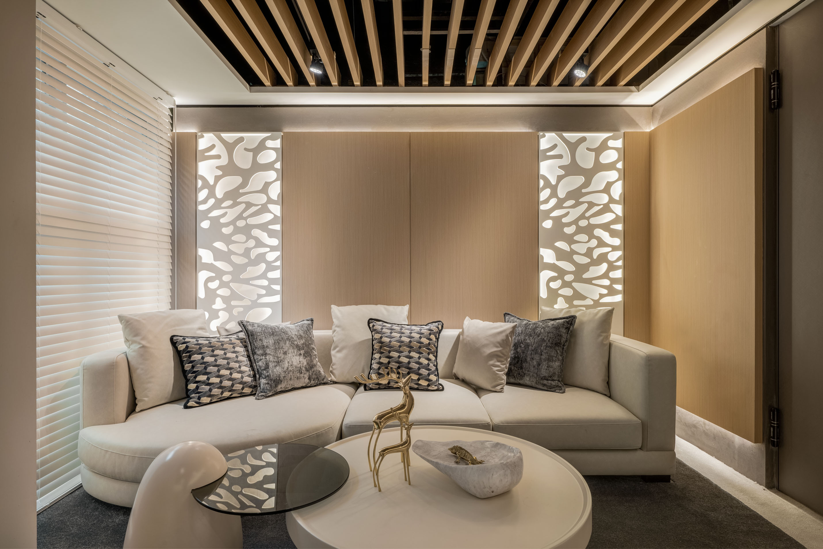 The reception center uses coral and an eight-pointed star as symbolic elements, presenting a sophisticated and refined atmosphere through meticulous craftsmanship and the interweaving of different materials. The show flats are inspired by luxury brands, incorporating symbolic elements to transform the luxury context into the language of residential spaces, presenting a unique visual memory and high recognizability.