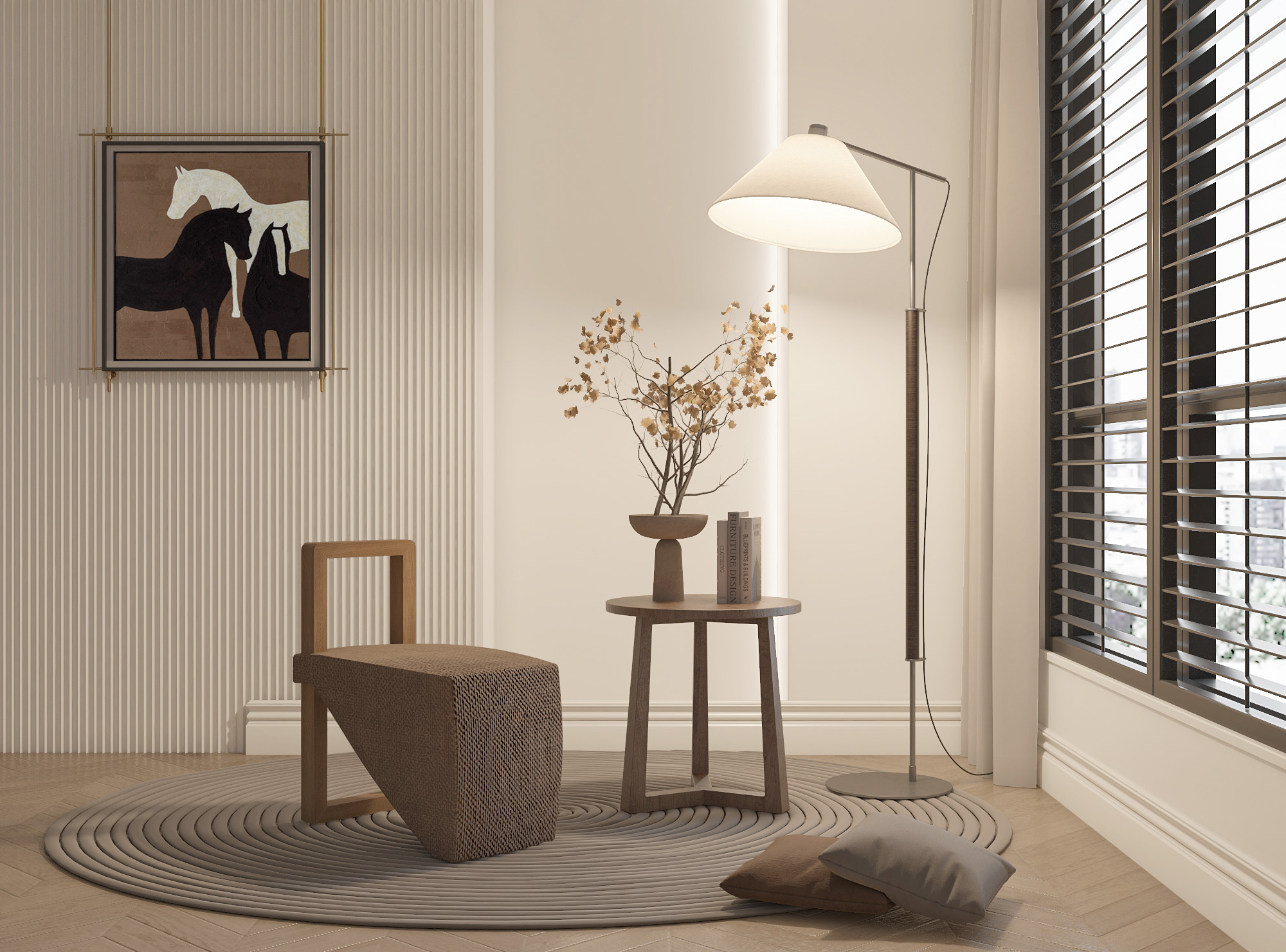 In terms of functional design, the Ease Seat integrates "invisible care" for the elderly into its minimalist form. The cushion features a generous size and high-resilience design, effectively dispersing body pressure to accommodate the needs of the elderly for prolonged sitting. Combined with the breathability of the recycled fabric, it offers an exceptional seating experience. The solid wood side armrest is the highlight of the design; its height and angle have been rigorously calculated based on ergonomics. This provides extremely stable support for standing up and sitting down, while the streamlined assembly structure eliminates the risk of accidental bumps caused by redundant components, offering users a profound sense of security in their daily lives.