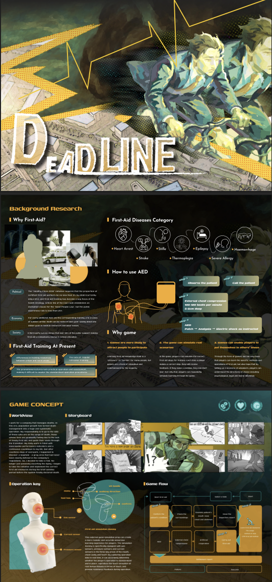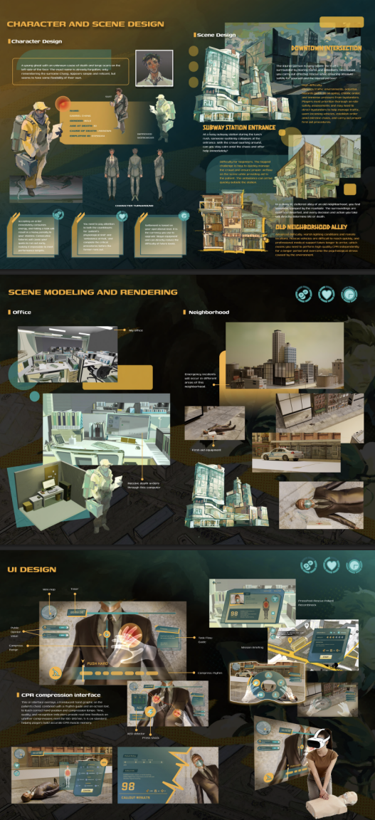 This project designs a scenario-based AR serious game grounded in real emergency medical incidents, targeting 18–35-year-old “hesitant bystanders.” By overlaying virtual guidance onto the real environment, it creates an immersive space where players can safely follow the full rescue workflow step by step. Through a sustainable “learn–practice–reinforce” loop, the game strengthens individual responsibility and confidence as first responders while promoting public awareness of emergency care and a culture of timely intervention.