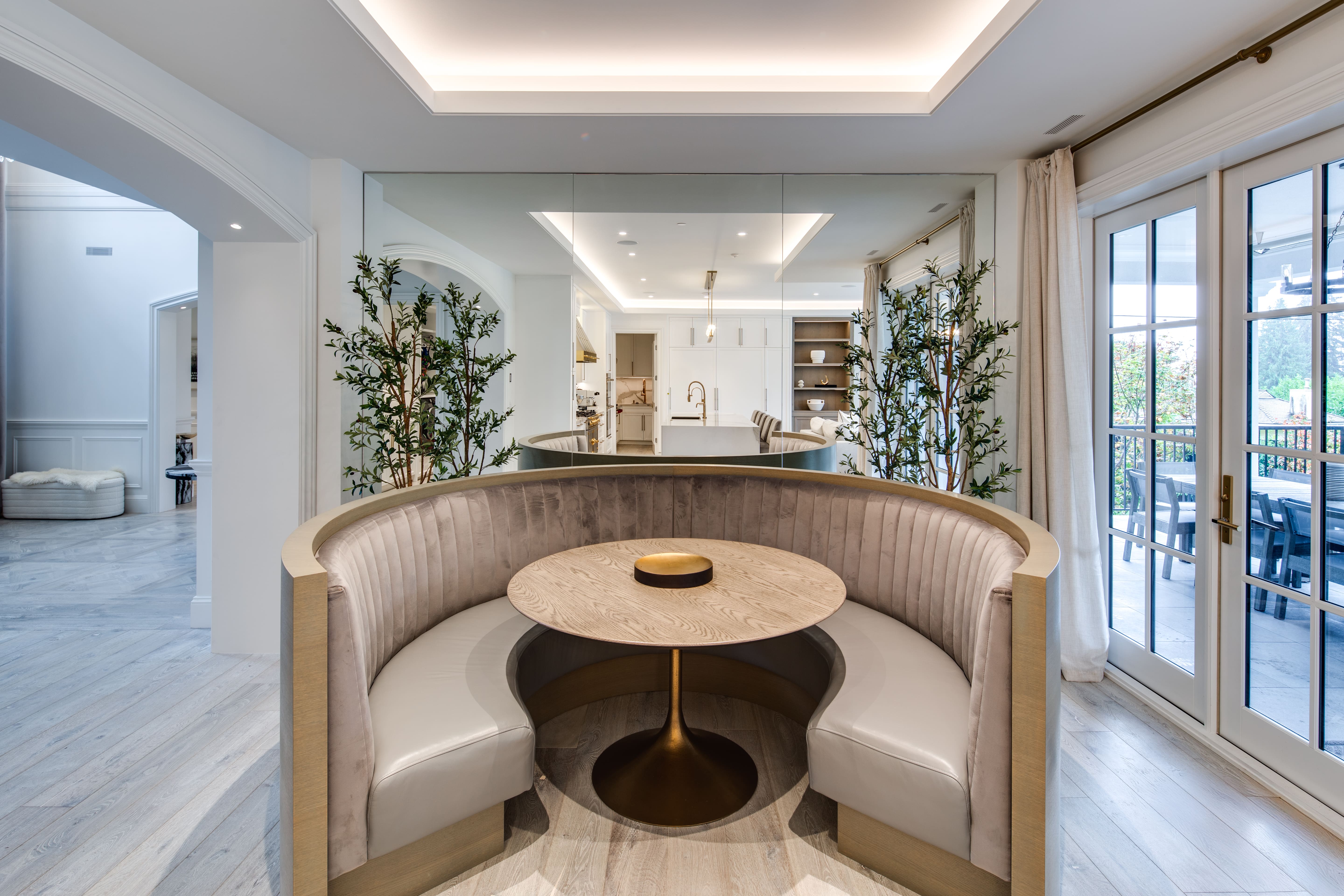 Wellness informs every detail: low-VOC finishes, rounded edges, organic textiles, and biophilic sightlines to the garden support comfort and ease. Concealed storage, ergonomic workstations, and curated tactile surfaces enhance usability while maintaining beauty.