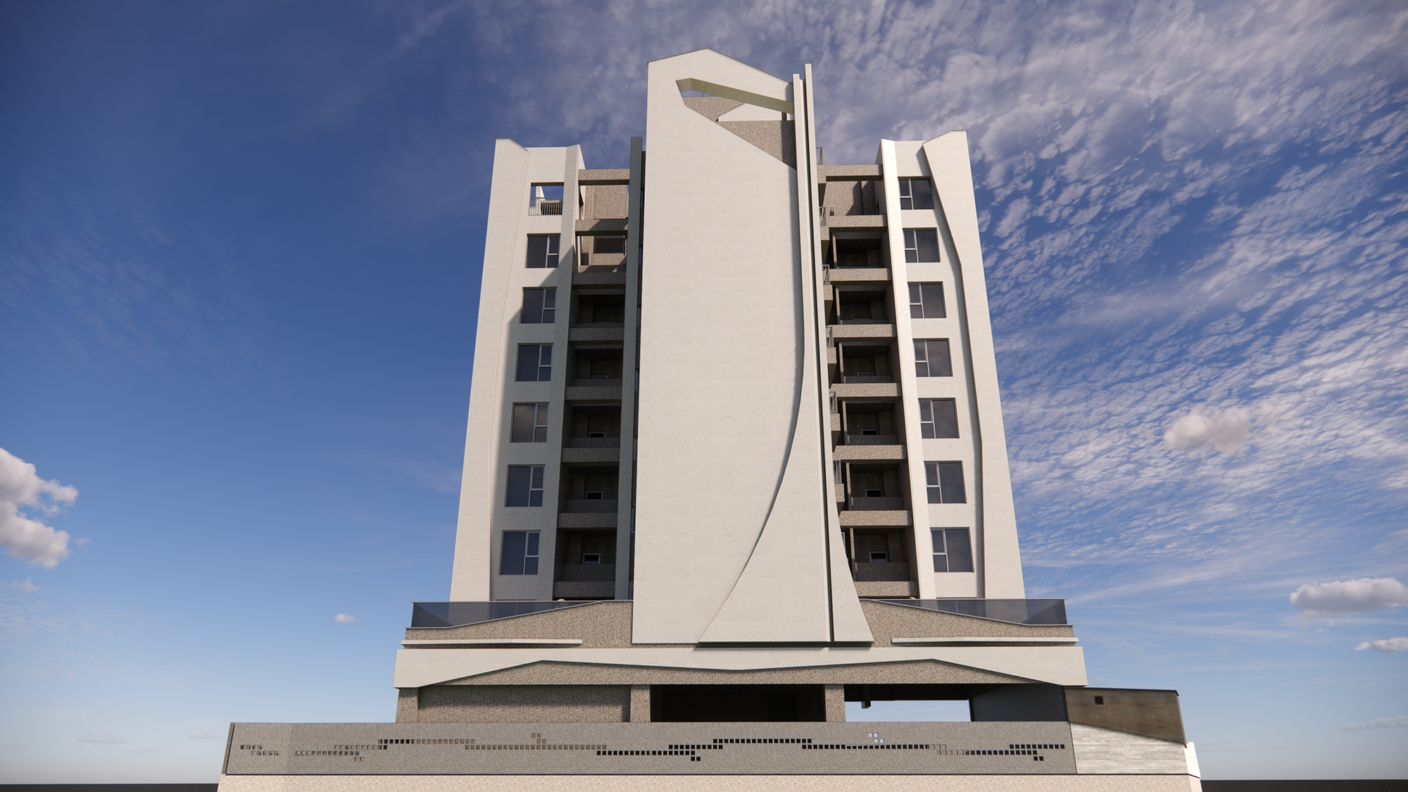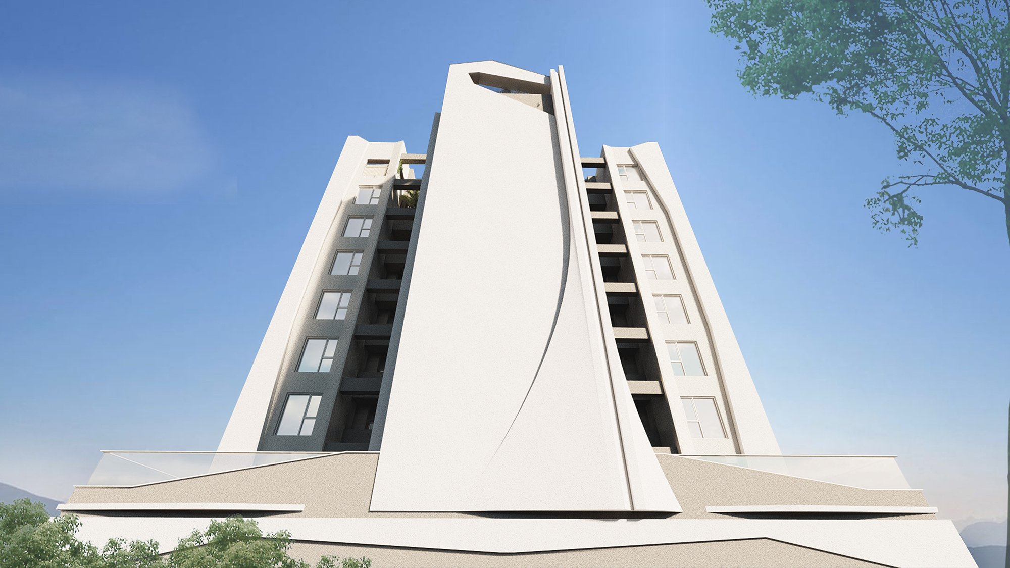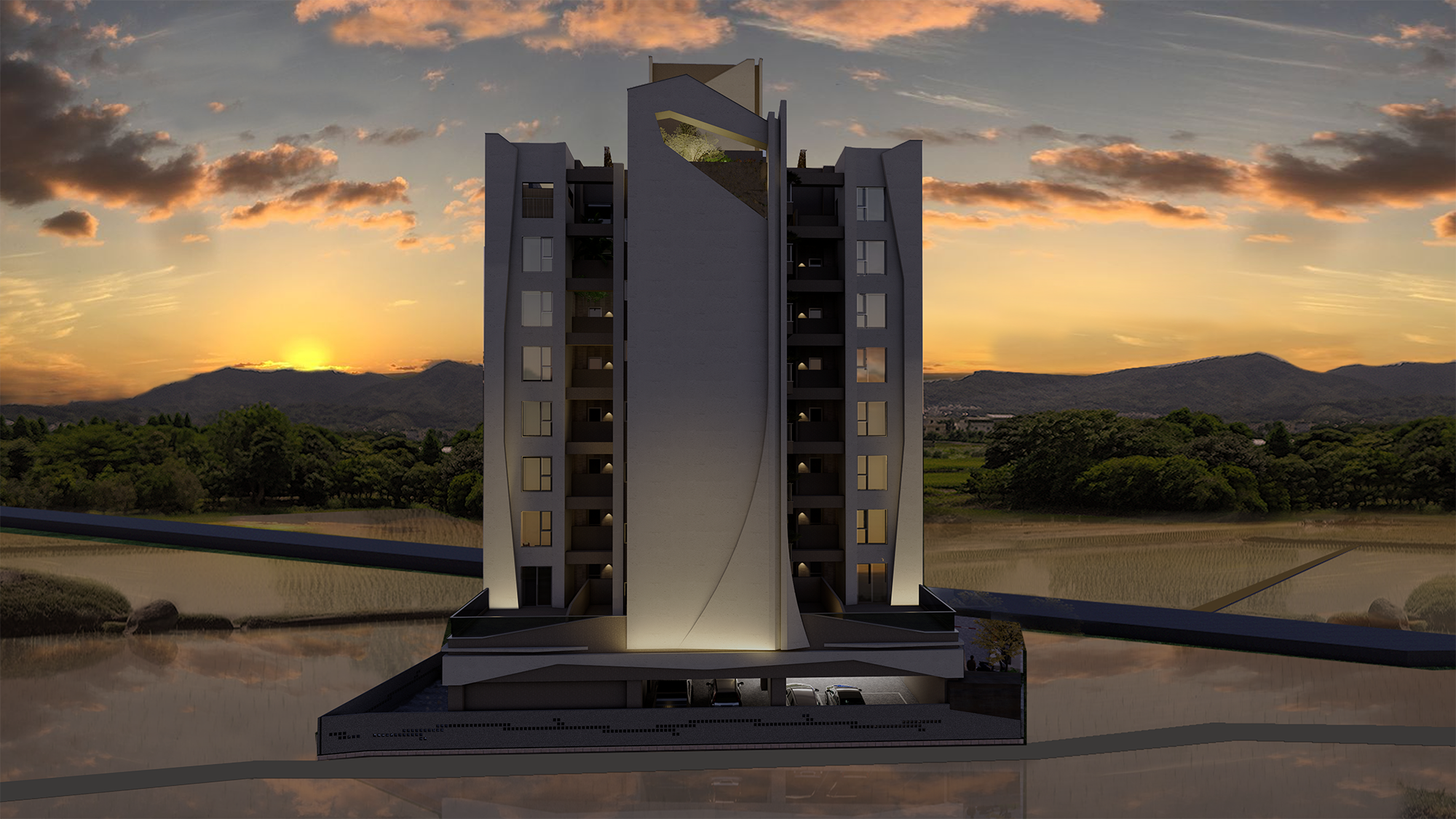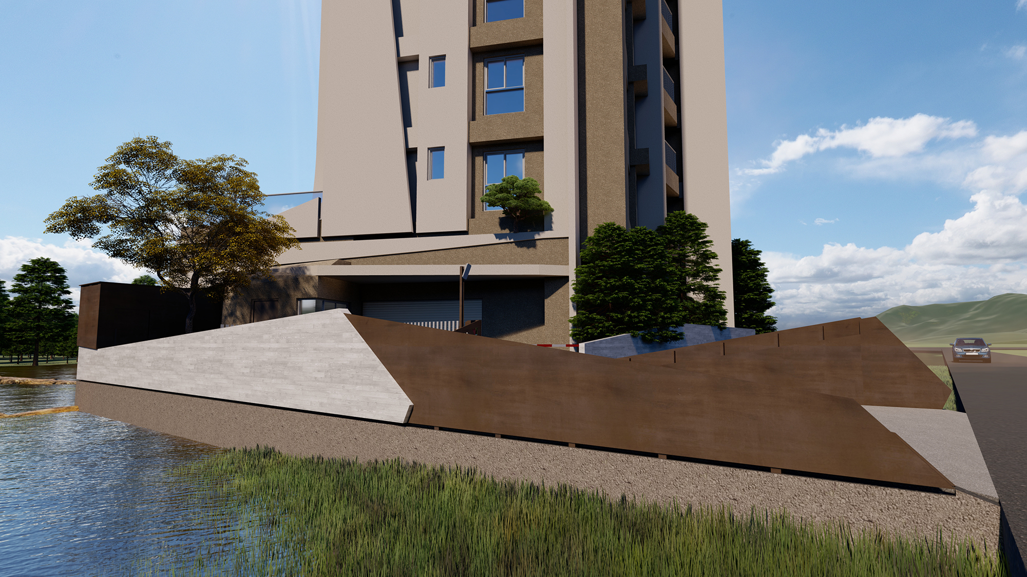 The spatial configuration is designed to create flexible living environments that can adapt to changing residential patterns. Irregularly projecting frames define the façade with a refined rhythmic order, making the building appear more precise and streamlined. The landscape strategy aims to soften architectural boundaries while reducing solar exposure and thermal load. By integrating greenery and allowing for the dynamic interplay of light and shadow, the architecture achieves a harmonious balance with its surroundings. Additionally, the building features a gently folded, multi-layered wall system that incorporates wild, field-inspired planting, which is distinct from traditional courtyard landscapes. This approach fosters a holistic harmony between functionality, environment, and architectural expression.