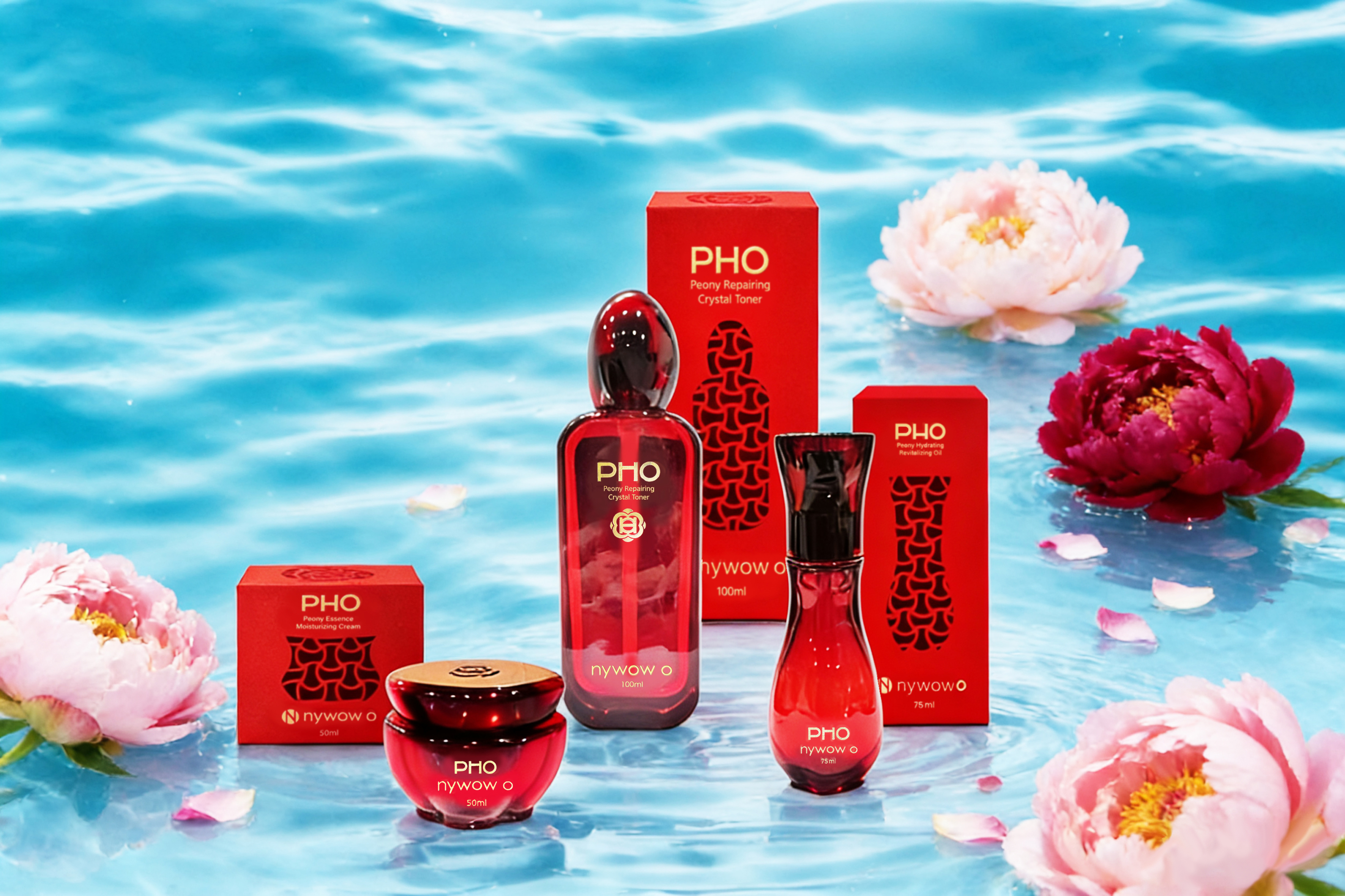 The series constructs a unified visual system through the integration of “peony motifs, Ru ware aesthetics, and contemporary illumination.” Petal-shaped bottles, rouge-red glaze tones, and silver ingot–patterned windowed packaging collectively form a cohesive design. Each item within the collection is shaped by refined petal silhouettes, giving the bottles a sculptural presence when displayed. The outer box features Giuseppe Castiglione’s peony paintings and continuous silver ingot patterns, symbolizing prosperity and longevity. Emphasizing the trilogy of “scientific research, botanical power, and Eastern artifacts,” the series elevates skincare into an elegant ritual while enhancing collectability, durability, and brand recognition.
