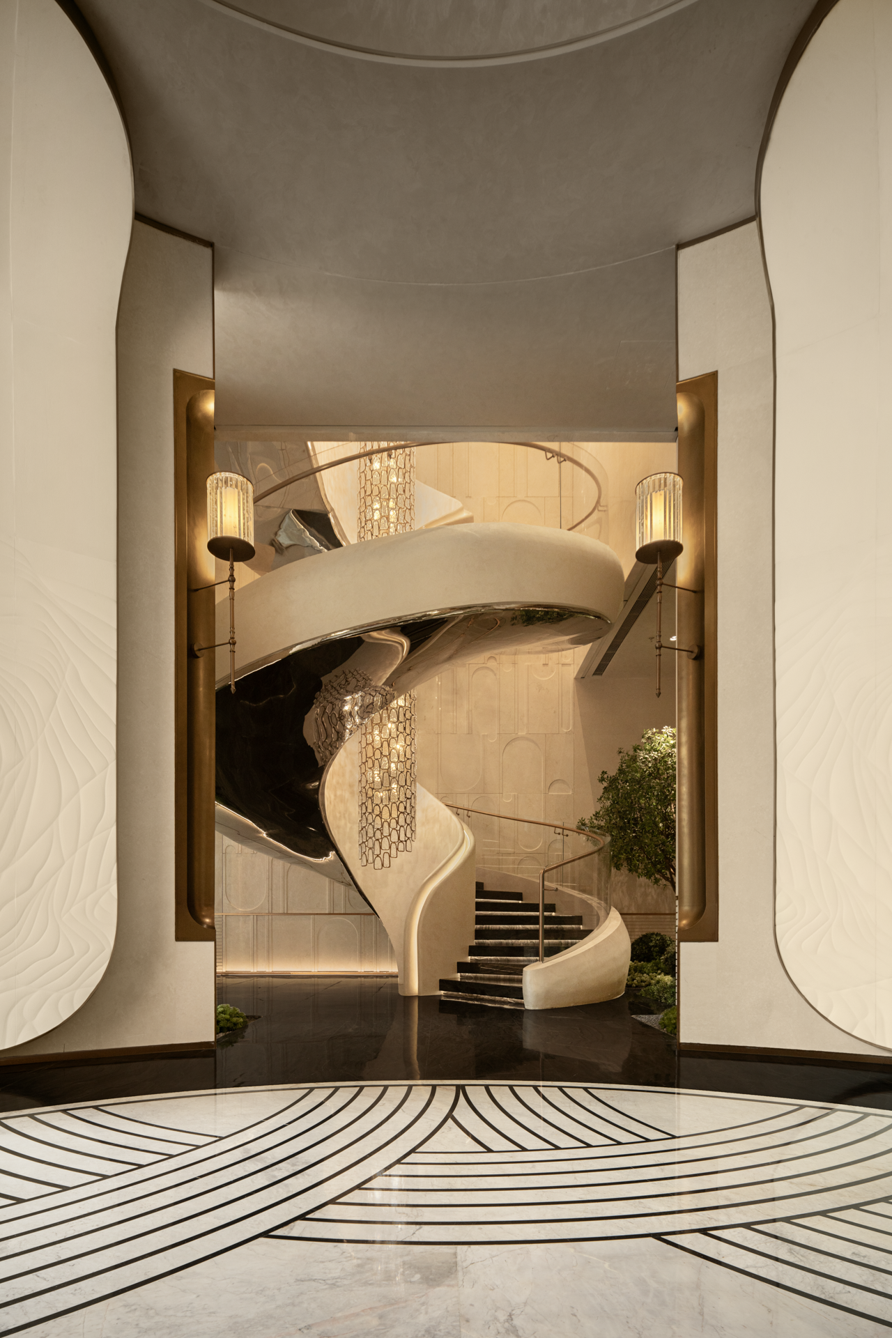 The project addresses several core challenges. Classic motifs are reinterpreted through modern materials to balance heritage with contemporary taste. Dual-circulation pathways are organized around the daylight-filled atrium to ensure smooth movement and visual openness. The integration of expansive glazing and landscaped corridors creates a naturally flowing spatial experience with precise material transitions.