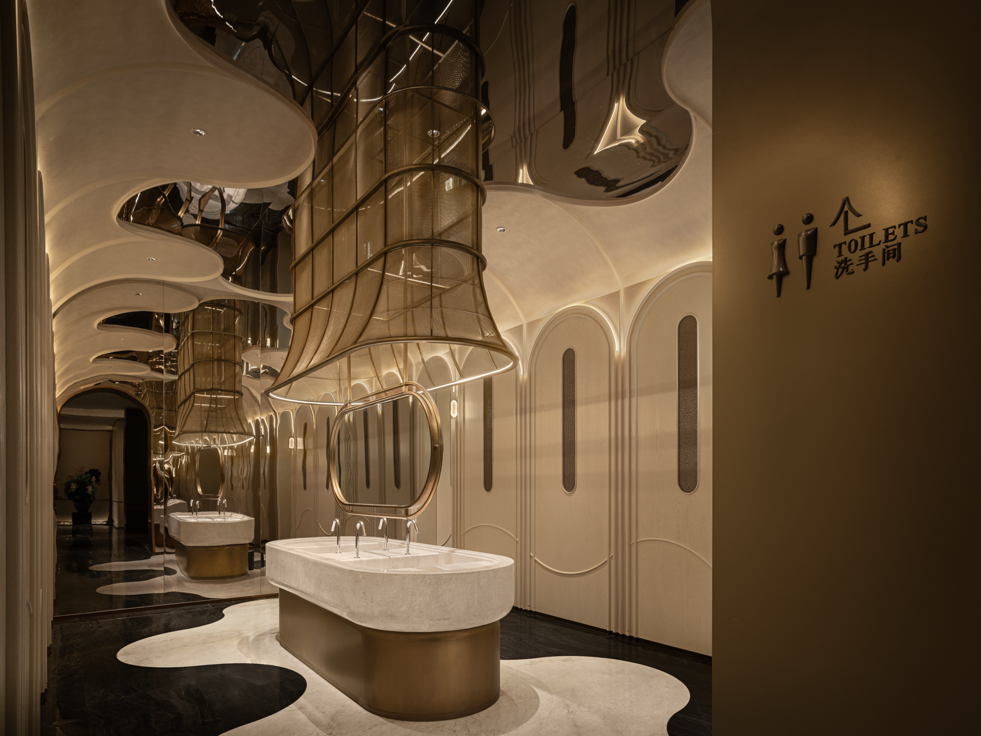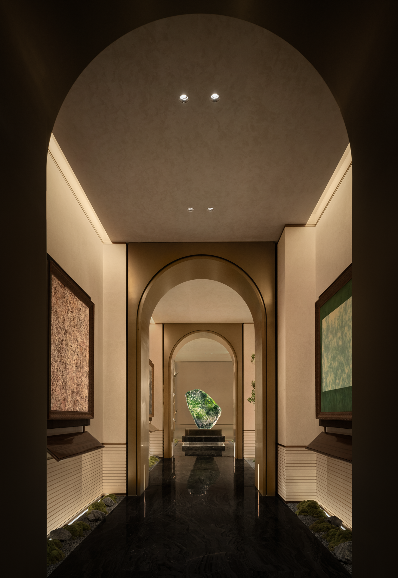 The concept draws from insights into the local market and reimagines the spatial rhythm of Shanghai’s historic landmarks in a modern context. Shanghai-style motifs—arched portals, curved geometries, bronze finishes, and custom fragrances—compose a multi-sensory journey of sight, touch, and smell. This creates a memorable emotional connection between people and space, forming an immersive sales gallery and clubhouse.
