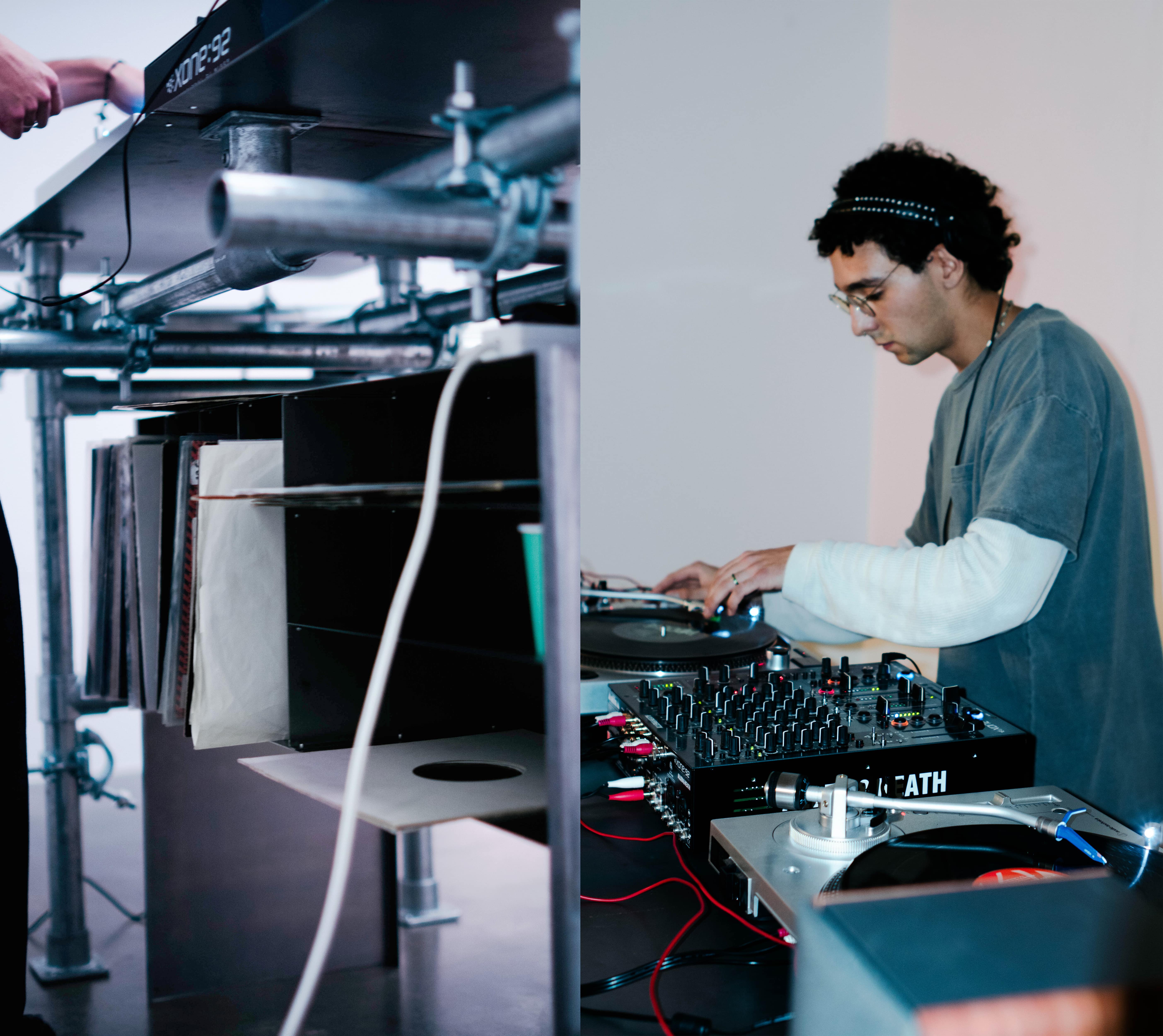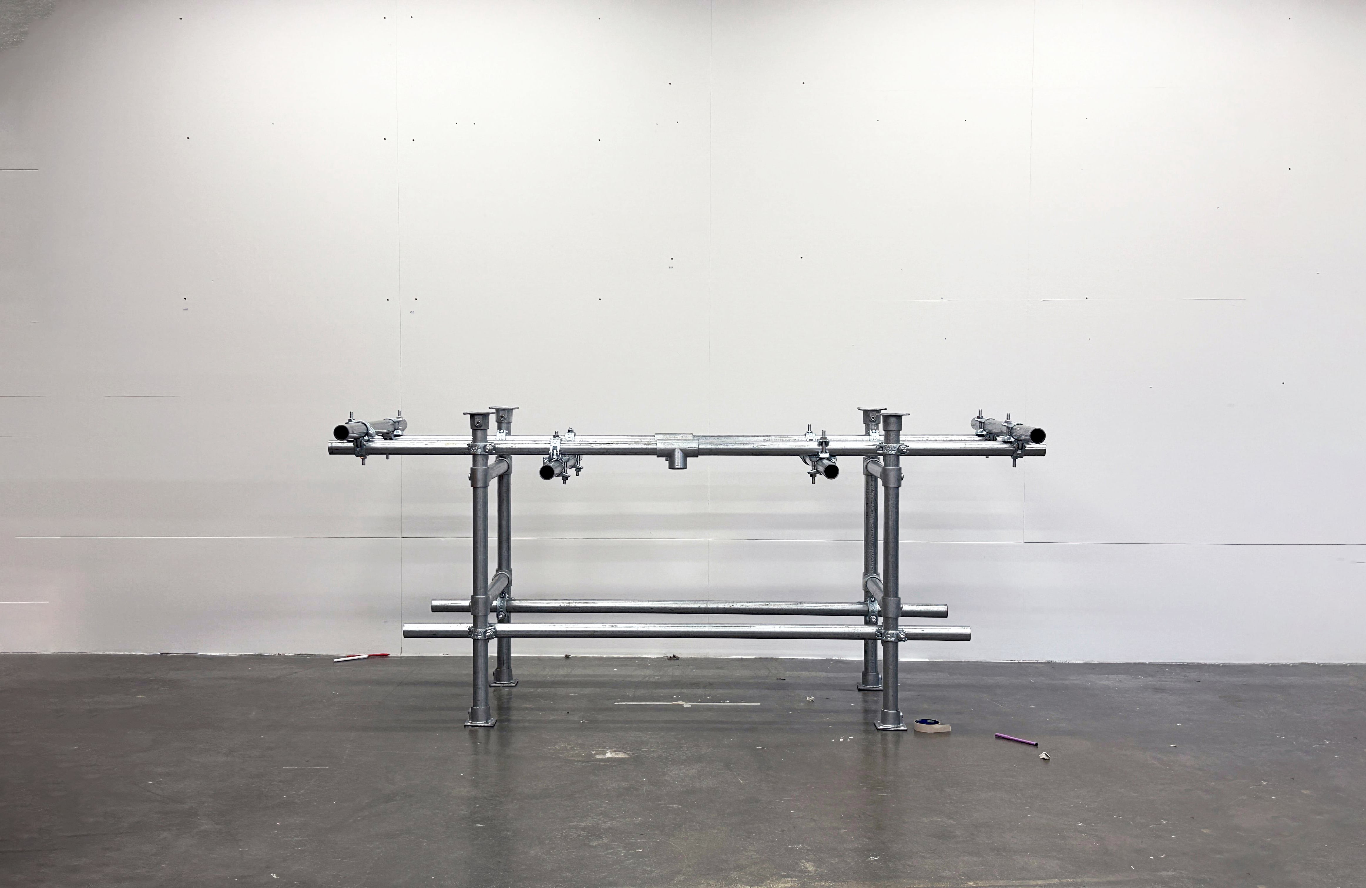 This real time audiovisual feedback dissolves the boundary between object and event. Combined with a modular pipe based structure, the system can be continually reconfigured, producing different scenes across speculative retail environments, pop ups, and event contexts.