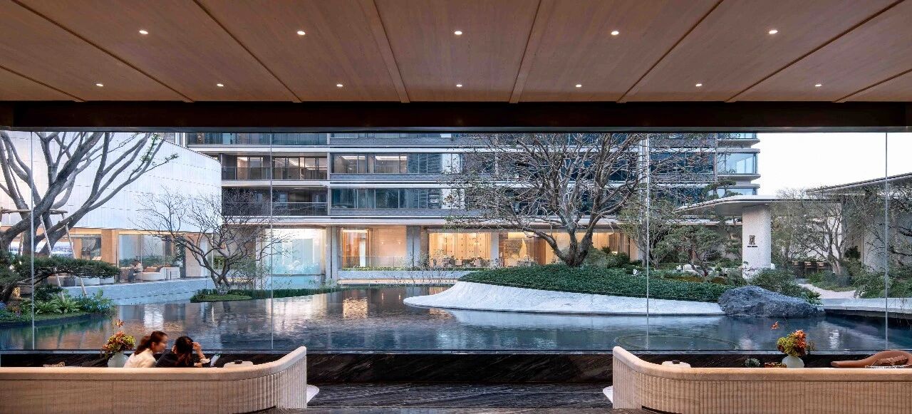 The Life Hall, with a height of 5.1 meters and borderless glass, eliminates the inside and outside. The half moon curved stone facade and the still water courtyard together create a poetic practice of "holding the moon in the hand while holding water". The corridor connects the flowing ecological scroll, with water and stones intertwined and light and shadow immersed, creating a space like rice paper blending with tranquil poetry.
