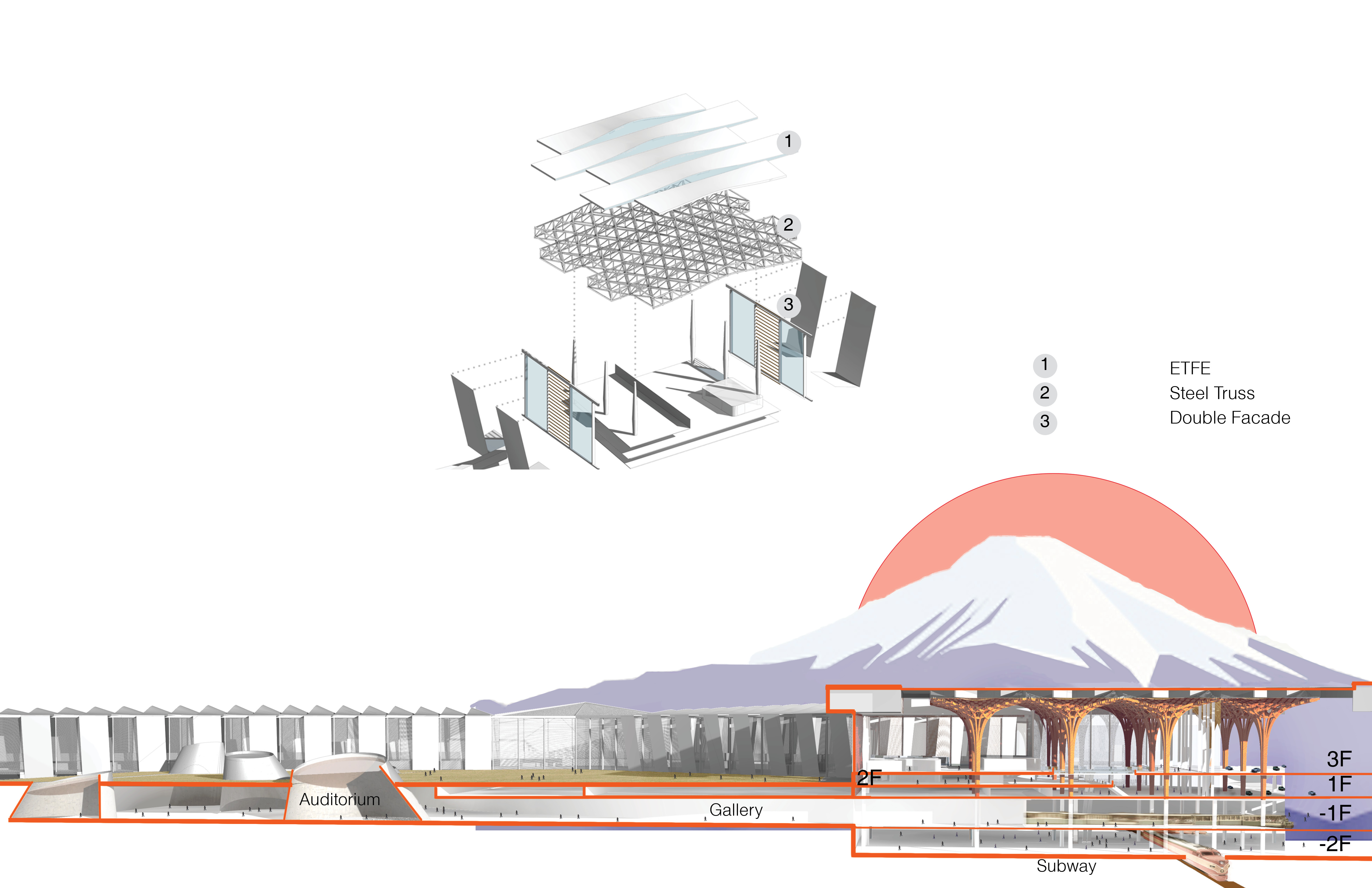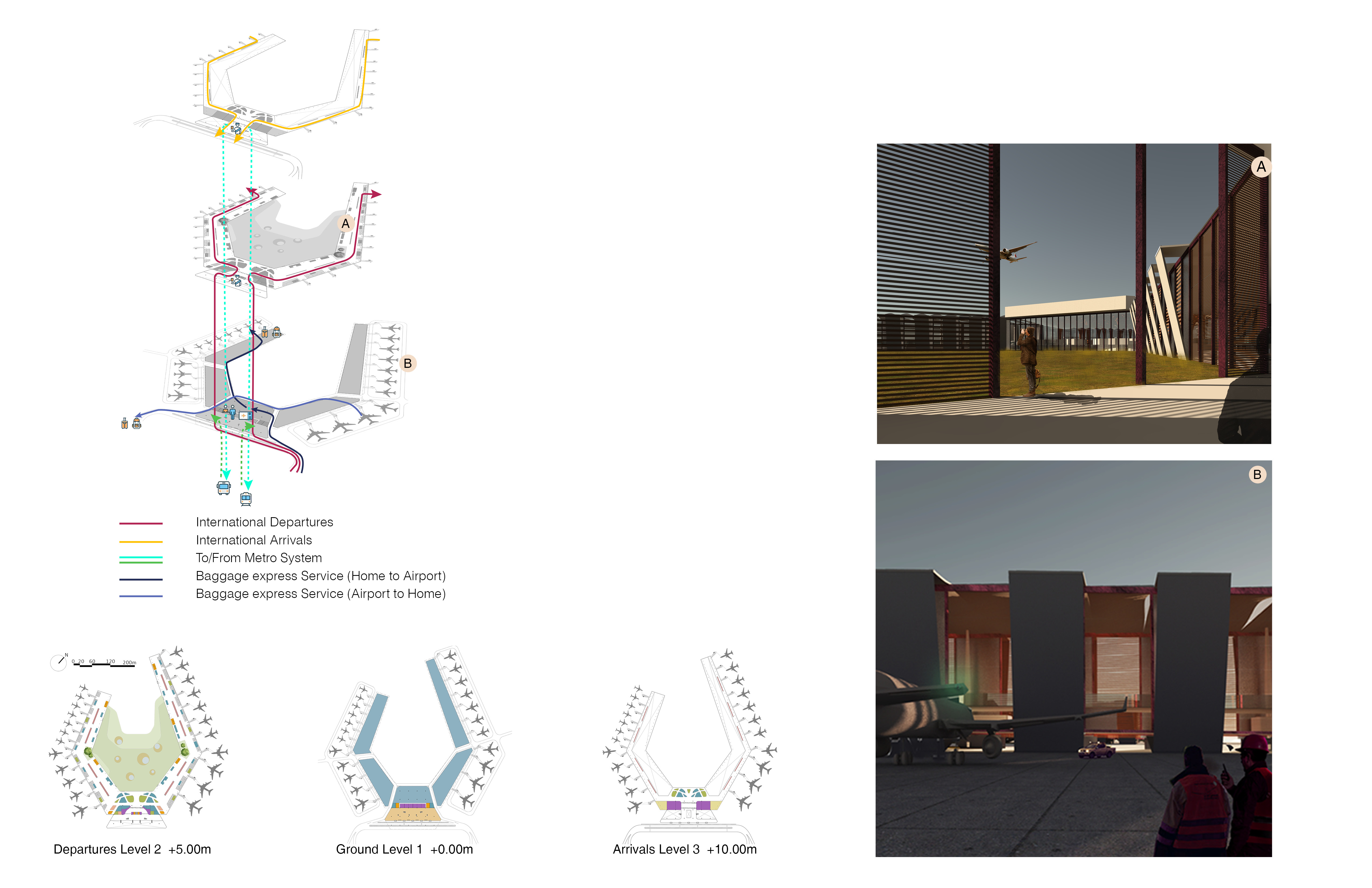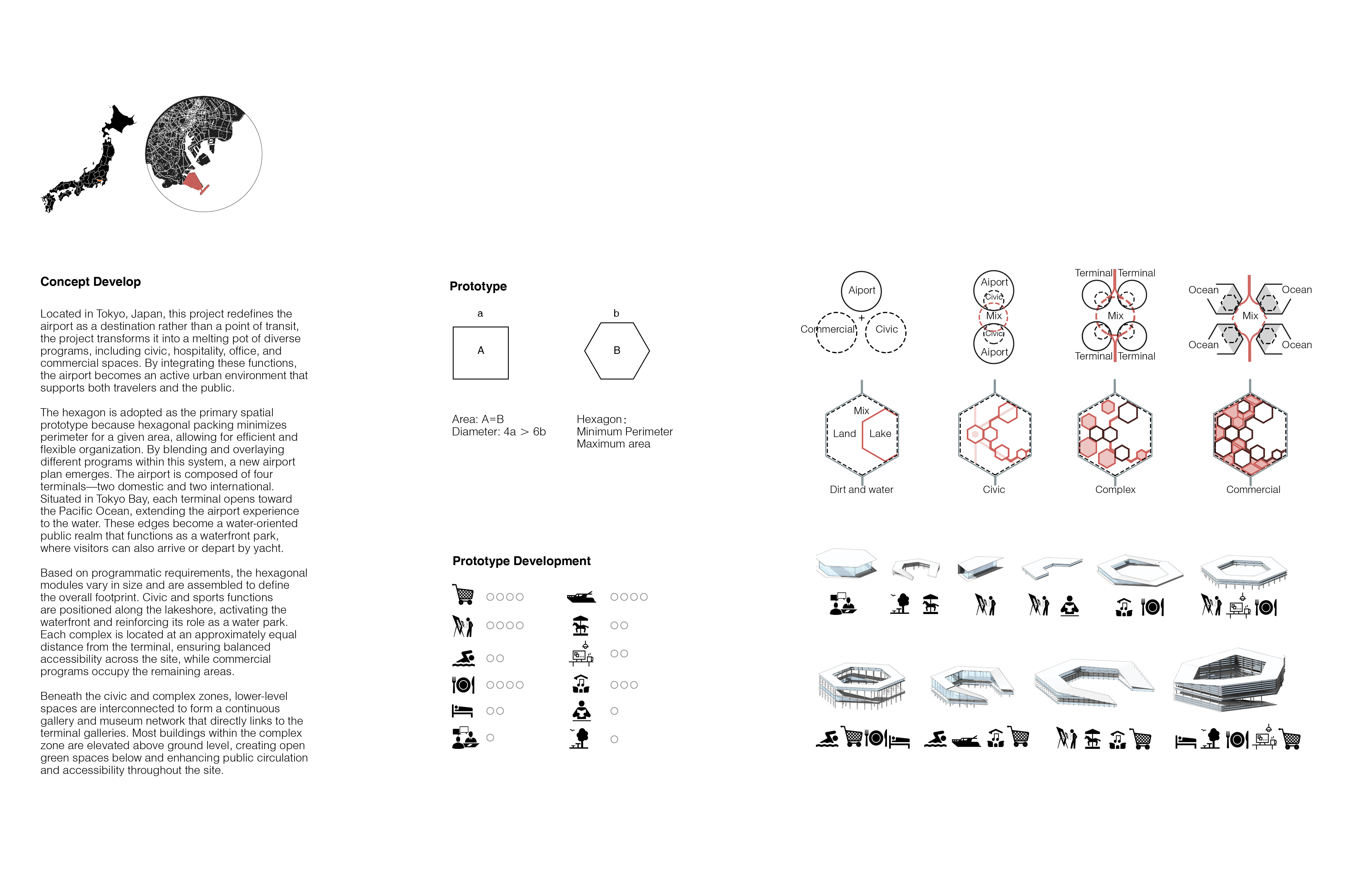People take flights to other cities and countries every day, making the airport a vital transportation space. But what if an airport became a destination rather than just a point of transit? This project re-envisions Tokyo International Airport in the future, redefining the airport by combining aviation infrastructure with other civic functions.